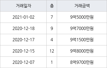 지난 2021년 1월 2일 같은 면적형인 7층 물건이 9억5000만원에 실거래된 것과 비교해 같은 가격이다.