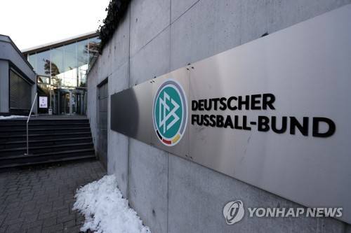 epa08938426 The German football federation (DFB) logo is seen at the German football federation headquarters during an extraordinary meeting of the Executive Committee in Frankfurt, Germany, 15 January 2021. EPA/RONALD WITTEK