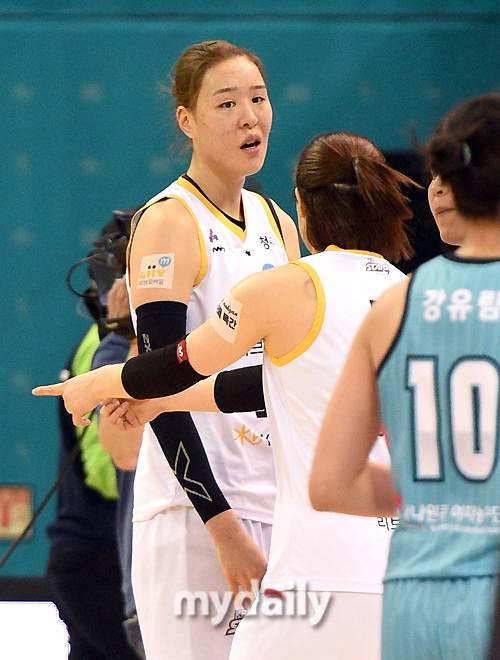 [마이데일리 = 부천 유진형 기자] KB스타즈 박지수가 15일 오후 경기도 부천실내체육관에서 진행된 'KB국민은행 Liiv M 2020-2021 여자프로농구' 하나원큐와 KB스타즈의 경기에서 주심에게 항의하고 있다.