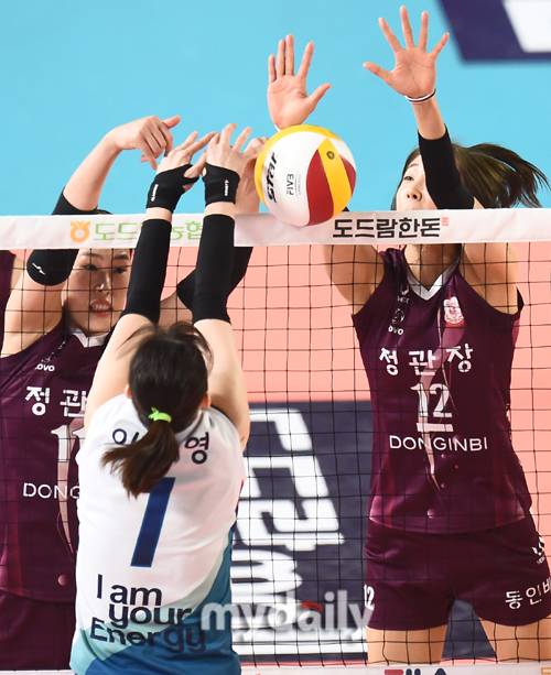 [마이데일리 = 대전 곽경훈 기자] 인삼공사 최은지와 한송이가 15일 오후 대전충무체육관에서 진행된 '2020-2021 도드람 V-리그' 인삼공사-GS칼텍스의 경기에서 공격을 시도하고 있다.- ⓒ마이데일리(www.mydaily.co.kr). 무단전재&재배포 금지 -
