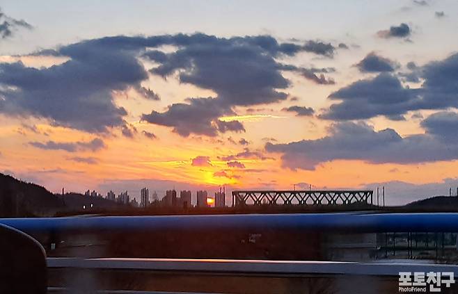 차창 밖으로 스치는 구름 좋은 노을빛이 아름다워 폰으로 셔터를 눌렀습니다.