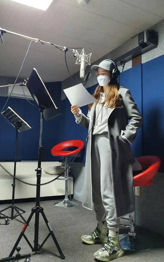 사진 속에는 녹음 중인 성유리의 모습이 담겨있다.
