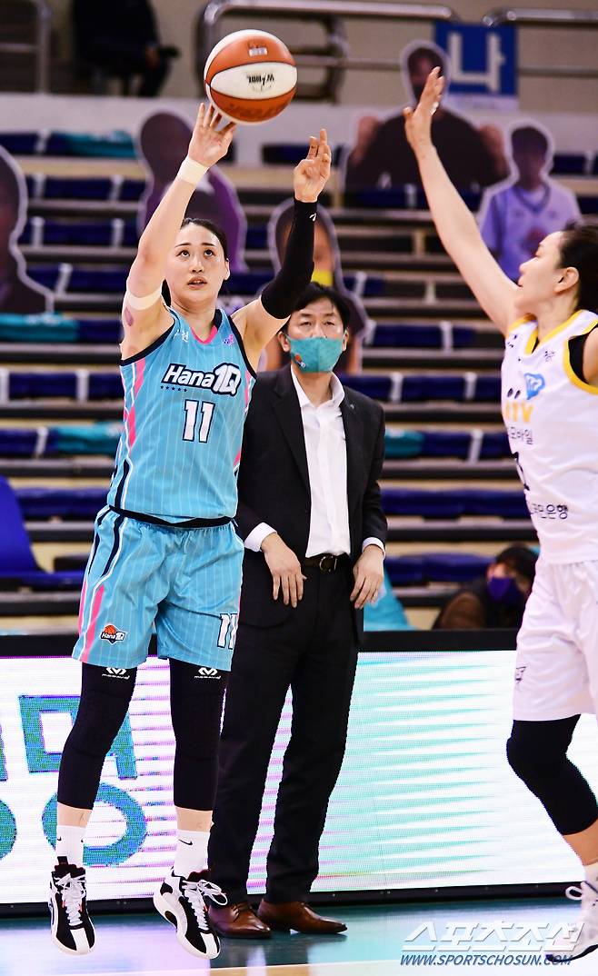 2020-2021 여자프로농구 KB스타즈와 하나원큐의 경기가 15일 부천체육관에서 열렸다. 하나원큐 강이슬이 중거리슛을 시도하고 있다. 부천=정재근 기자 cjg@sportschosun.com/2021.1.15/