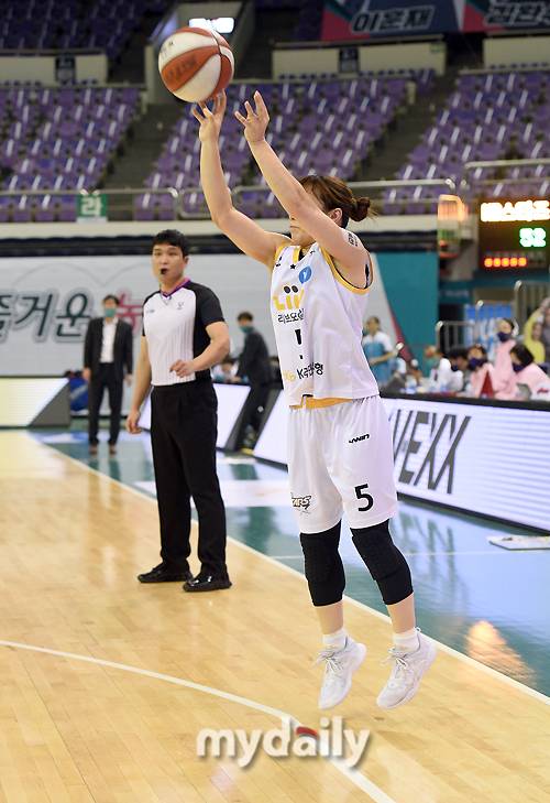 [마이데일리 = 부천 유진형 기자] KB스타즈 심성영이 15일 오후 경기도 부천실내체육관에서 진행된 'KB국민은행 Liiv M 2020-2021 여자프로농구' 하나원큐와 KB스타즈의 경기에서 3점슛을 시도하고 있다.