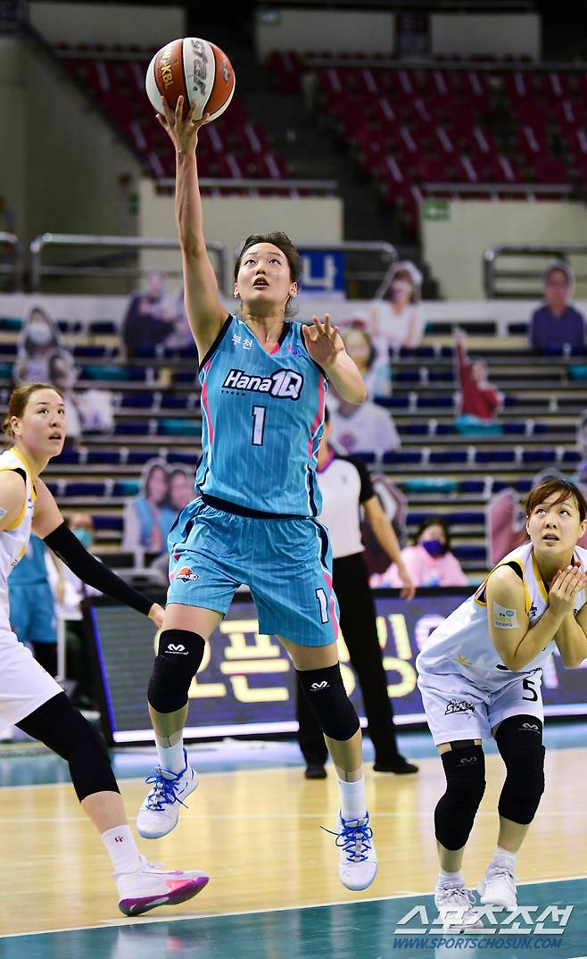 2020-2021 여자프로농구 KB스타즈와 하나원큐의 경기가 15일 부천체육관에서 열렸다. 하나원큐 신지현이 레이업슛을 시도하고 있다. 부천=정재근 기자 cjg@sportschosun.com/2021.1.15/