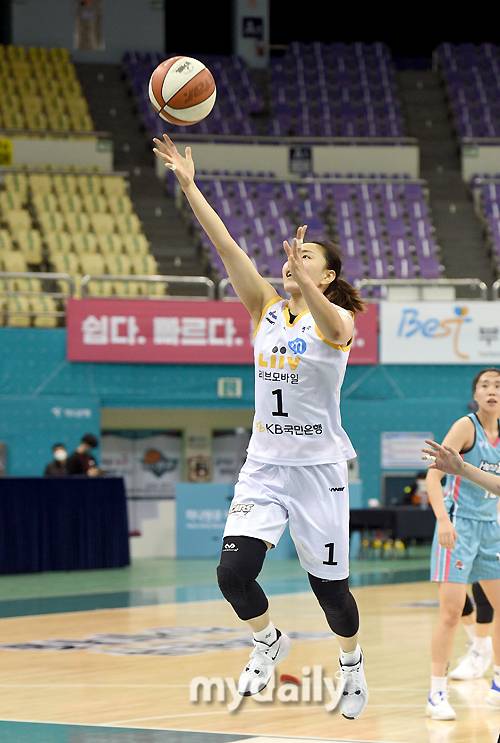 [마이데일리 = 부천 유진형 기자] KB스타즈 염윤아가 15일 오후 경기도 부천실내체육관에서 진행된 'KB국민은행 Liiv M 2020-2021 여자프로농구' 하나원큐와 KB스타즈의 경기에서 레이업슛을 시도하고 있다.