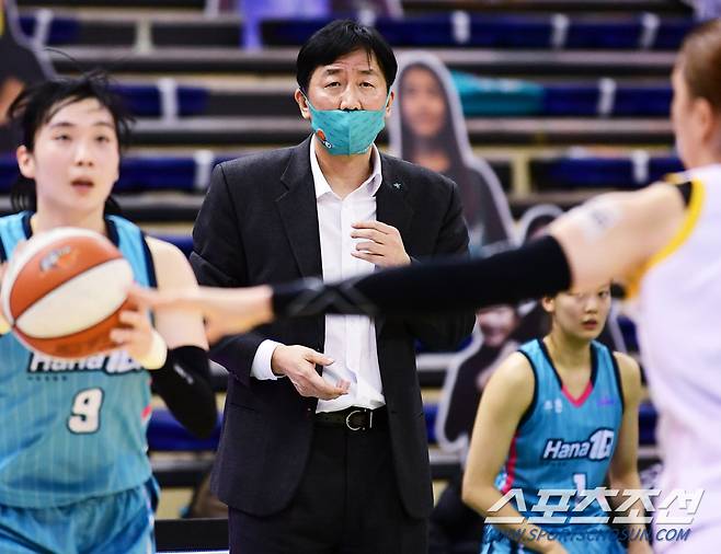 2020-2021 여자프로농구 KB스타즈와 하나원큐의 경기가 15일 부천체육관에서 열렸다. 하나원큐 이훈재 감독이 경기를 지켜보고 있다. 부천=정재근 기자 cjg@sportschosun.com/2021.1.15/