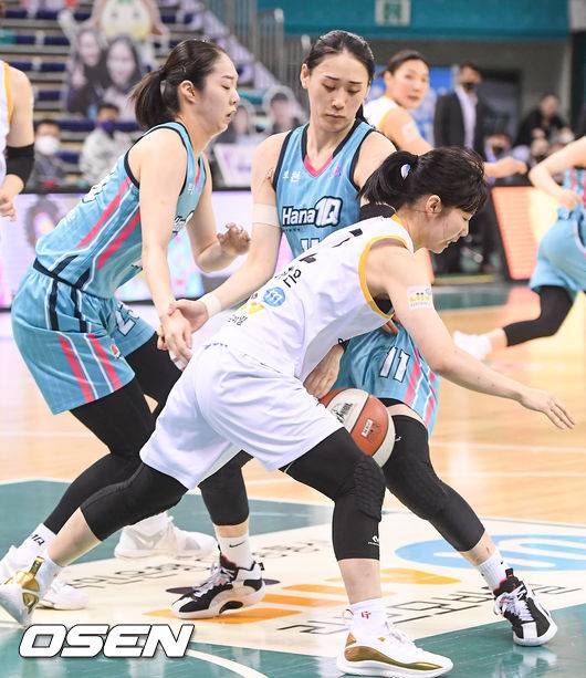 4쿼터 하나원큐 강이슬이 KB 허예은의 공을 빼앗고 있다. / soul1014@osen.co.co.kr