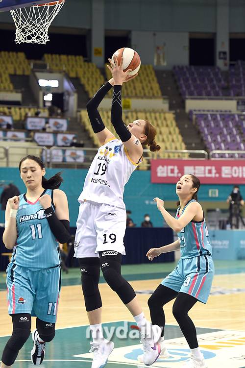 [마이데일리 = 부천 유진형 기자] KB스타즈 박지수가 15일 오후 경기도 부천실내체육관에서 진행된 'KB국민은행 Liiv M 2020-2021 여자프로농구' 하나원큐와 KB스타즈의 경기에서 골밑공격을 시도하고 있다.