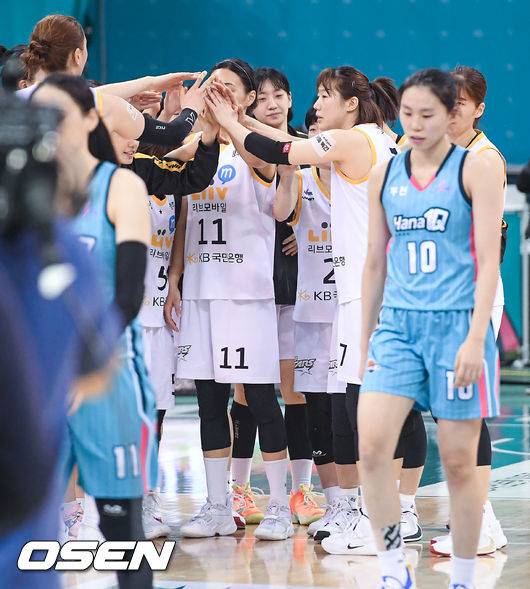 경기종료 후 KB 선수들이 승리의 기쁨을 나누고 있다. / soul1014@osen.co.co.kr