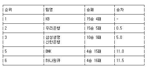 [여자농구 중간순위] 15일