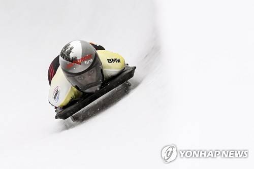 epa08938804 Janine Flock of Austria in action during the women's Skeleton World Cup event in St. Moritz, Switzerland, 15 January 2021. EPA/GIAN EHRENZELLER