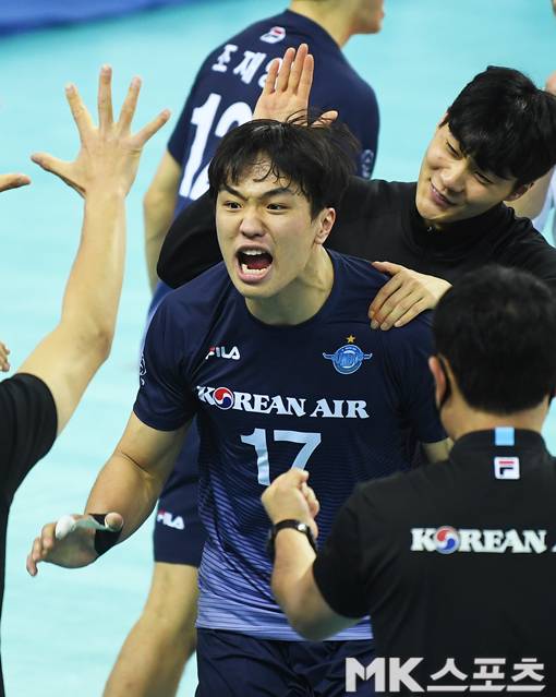 대한항공은 KB손해보험과 풀세트까지 가는 접전 끝에 정지석과 임동혁 등의 선전으로 세트 스코어 3-2로 승리했다.