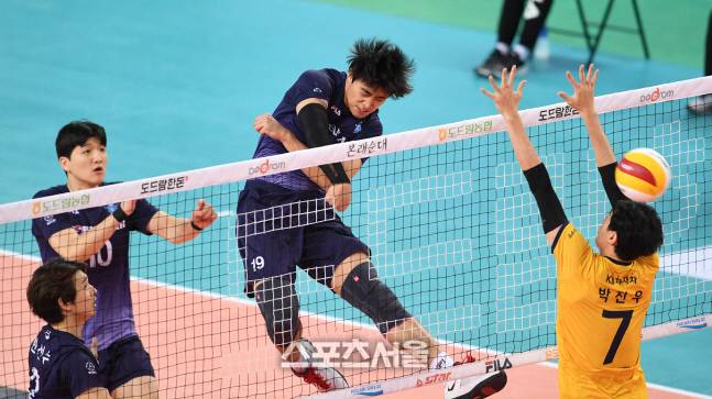 [포토]속공 성공하는 대한항공 진성태