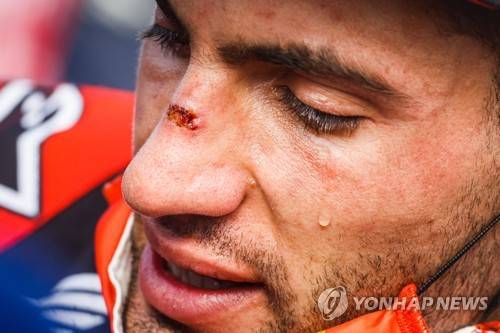 epa08938934 A handout photo made available by ASO of Kevin Benavides of Argentina, Honda, Monster Energy Honda Team 2021, celebrating winning the Bike section after the 12th and final stage of the Dakar 2021 between Yanbu and Jeddah, in Saudi Arabia, 15 January 2021. EPA/Florent Gooden HANDOUT via ASO SHUTTERSTOCK OUT HANDOUT EDITORIAL USE ONLY/NO SALES/NO ARCHIVES