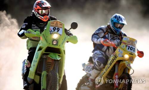 epa08938943 (FILE) - French rider Pierre Cherpin (L) and Pedro Penate Munoz (R) of Spain in action during the first stage from Saladillo, Buenos Aires to Santa Rosa, La Pampa at the Rally Dakar Argentina-Chile 2009 about 200km southwest of Buenos Aires, Argentina, 03 January 2009 (re-issued on 15 January 2021). French rider Pierre Cherpin has died after crashing on 10 Januray 2021 during the seventh stage of the Dakar Rally 2021 in Saudi Arabia, organisers confirmed on 15 January 2021. EPA/CEZARO DE LUCA