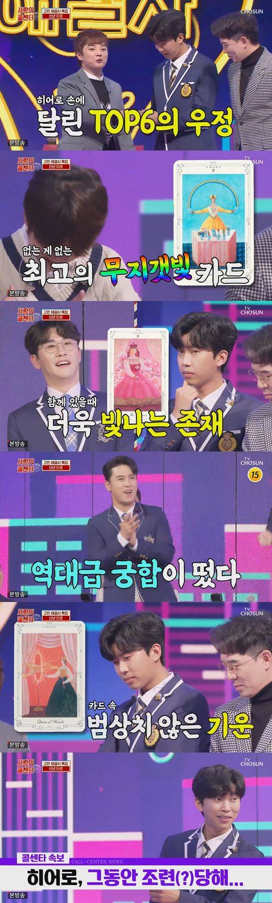 이날 최현우는 임영웅의 신년 타로카드를 봐주겠다고 말했다. 최현우는 임영웅에게 6명의 멤버들을 생각하면서 카드를 섞어보라고 주문했다. 이어 최현우는 임영웅에게 "이찬원을 생각하며 카드를 뽑아라"라고 말했다. 이어 임영웅은 TOP6를 생각하면서 하나씩 카드를 뽑았다.