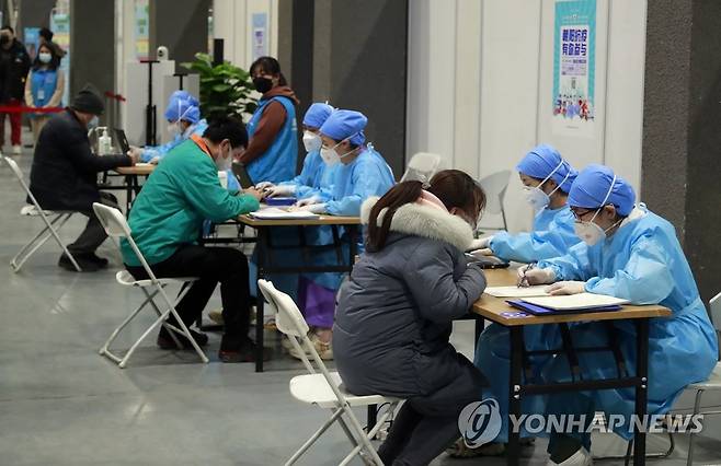(베이징=연합뉴스) 김윤구 특파원 = 15일 중국 베이징 차오양구에서 신종 코로나바이러스 감염증(코로나19) 백신 접종 희망자가 의료진과 이야기를 나누고 있다. 2021. 1. 15.