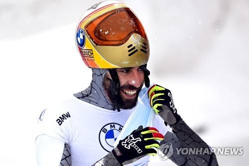epa08939103 Ander Mirambell of Spain reacts after competing in the men's Skeleton World Cup event in St. Moritz, Switzerland, 15 January 2021. EPA/GIAN EHRENZELLER