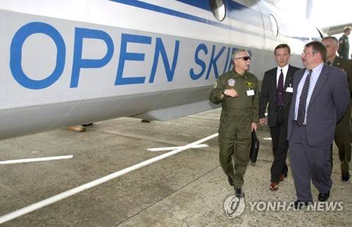 epa08939129 (FILE) - Belgian defence minister Andre Flahaut (R) views the Russian unarmed Antonov plane in Melsbroek, Brussels, Belgium, 13 August 2002 (reissued 15 January 2021). Russia on 15 January 2021 said it would withdraw from the Open Skies international treaty that allows observation flights over military facilities after the United States quit the agreement in November 2020. The 'Open Skies' operations were active since 01 January 2002. EPA/BENOIT DOPPAGNE BELGIUM OUT *** Local Caption *** 99335257