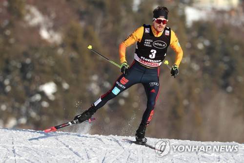 epa08939133 Fabian Riessle of Germany in action during the men's Gundersen NH/10km competition at the FIS Nordic Combined World Cup in Val di Fiemme, Italy, 15 January 2021. EPA/ANDREA SOLERO