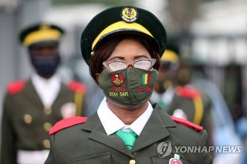 epa08939161 A female military legion member wears a face mask as she stands in line during a military parade for the fallen heroes at the Tafawa Balewa military arcade in Lagos, Nigeria, 15 January 2021. The Nigerian military celebrates fallen heroes in the ceremony that includes laying of wreaths, a military parade, and gun salutes. EPA/AKINTUNDE AKINLEYE