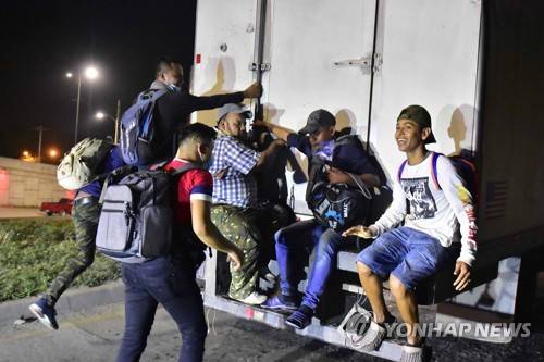 epa08939241 Hondurans leave in a new caravan of migrants from the Great Metropolitan Central of San Pedro Sula, Honduras, 15 January 2021. More than 3,000 Honduran migrants left in a caravan to the United States, where they hope to arrive despite warnings from the governments of USA, Guatemala and Mexico that they will not allow the entry of people who try to cross irregularly. EPA/JOSE VALLE