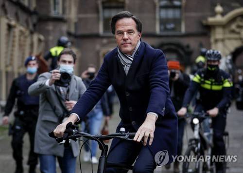 epa08939252 Dutch resigning Prime Minister Mark Rutte leaves after the press conference in The Hague, The Netherlands, 15 January 2021, after the resignation of the cabinet due to the childcare allowance affair, in which tax officials falsely accused thousands of parents of fraud and ordered them to repay childcare benefits. EPA/REMKO DE WAAL