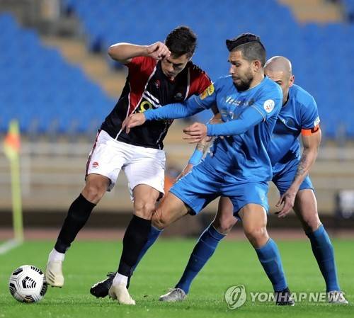 epa08939469 Al-Raed's player Nemanja Nikolic (L) in action against Al-Nassr's Petros (2-L) and Maicon (R) during the Saudi Professional League soccer match between Al-Raed and Al-Nassr at King Abdullah Sports City Stadium, in Buraidah, Saudi Arabia, 15 January 2021. EPA/STR