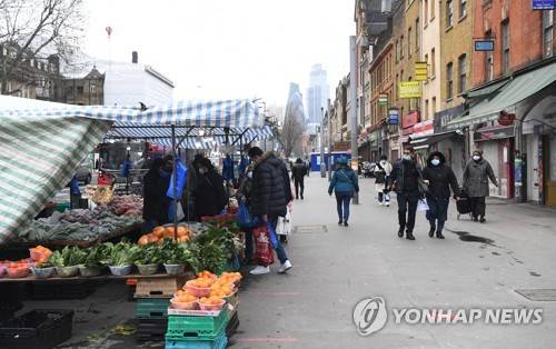 epa08939506 Shoppers in a street market with the City of London in the background, Britain, 15 January 2021. New figures released on 15 January 2021 show that the United Kingdom economy shrank by 2.6 percent in November as England was placed in lockdown for a second time. EPA/FACUNDO ARRIZABALAGA