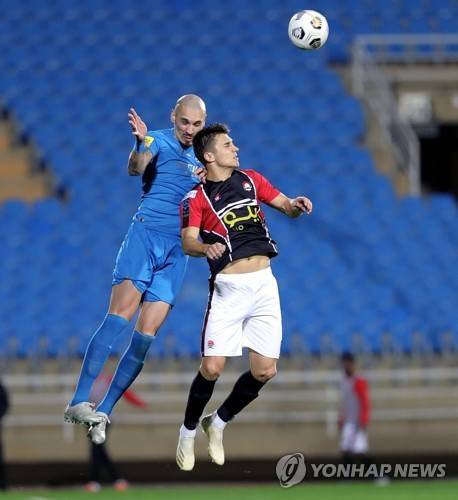 epa08939738 Al-Raed's player Nemanja Nikolic (R) in action against Al-Nassr's Maicon (L) during the Saudi Professional League soccer match between Al-Raed and Al-Nassr at King Abdullah Sports City Stadium, in Buraidah, Saudi Arabia, 15 January 2021. EPA/STR