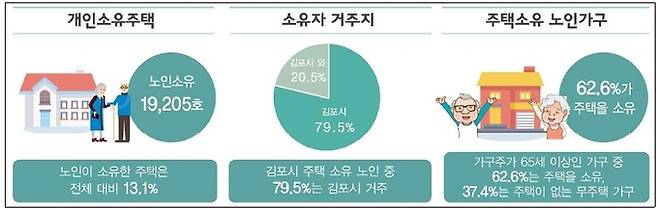 노인 가구는 2만622세대다. 이 가운데 독거노인 7만175세대의 성비를 살펴본 결과 여성(70.1%) 비율이 남성(29.9%)의 2.3배로 압도적으로 높게 나타났다. 관내 노인 소유 주택은 1만9205호로 전체 주택소유자 대비 13.1%였다. 가구주가 65세 이상인 가구 중 62.6%는 주택을 갖고 있는 것으로 조사됬다.