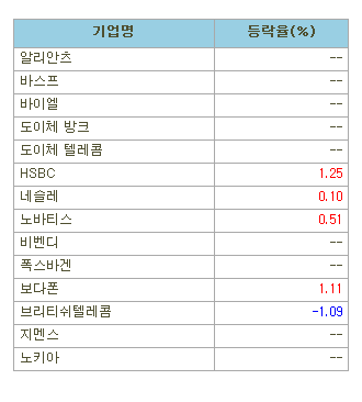 [표]유럽 주요기업 주가(1/14)