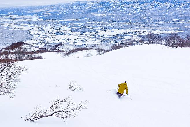 니가타의 위도는 서울과 비슷합니다. 그런데도 눈이 많이 오는 이유가 있습니다. 시베리아의 찬바람이 동해의 습기를 머금은 뒤 니가타 산악지역에 눈을 퍼붓습니다. 니가타 눈은 밀가루처럼 곱고 건조한 ‘파우더 스노’입니다. 바로 이 눈맛을 즐기기 위해 세계 각지에서 스키어가 모여듭니다.