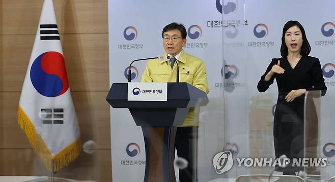 (서울=연합뉴스) 김인철 기자 = 권덕철 중앙재난안전대책본부 1차장(보건복지부 장관)이 16일 오전 정부서울청사에서 사회적 거리두기 단계 연장 조치 및 세부 조정안을 발표하고 있다. 2021.1.16