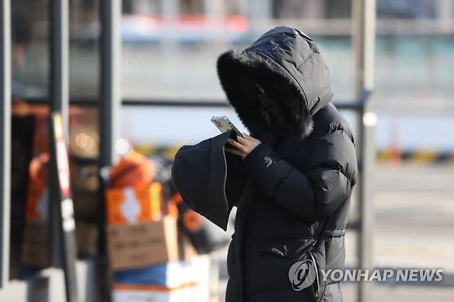(서울=연합뉴스) 임화영 기자 = 다시 강추위가 찾아온 16일 오전 서울역 인근에서 두꺼운 외투를 입은 시민들이 발걸음을 옮기고 있다. 2021.1.16