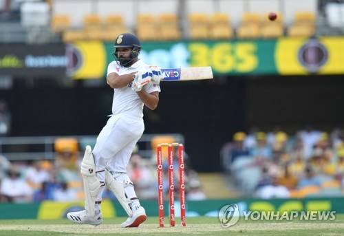epa08940703 Rohit Sharma of India in action during day two of the fourth Test Match between Australia and India at the Gabba in Brisbane, Australia, 16 January 2021. EPA/DARREN ENGLAND EDITORIAL USE ONLY EDITORIAL USE ONLY