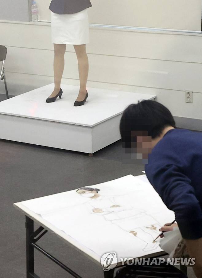 (서울=연합뉴스) 김인철 기자 = 16일 오후 서울 성북구 한성대학교에서 열린 2021학년도 정시 예술학부 실기고사에 응시한 수험생이 그림을 그리고 있다. 2021.1.16