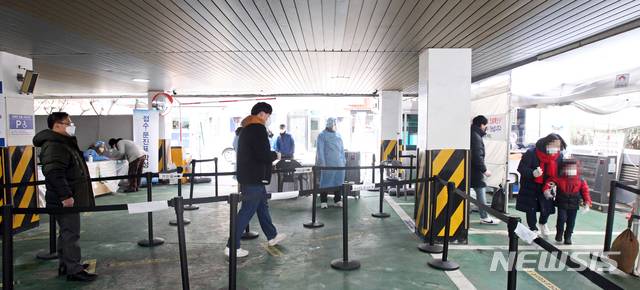 [서울=뉴시스]김명원 기자 = 16일 오전 주말을 맞아 서울 동작구 사당문화회관 주차장에 마련된 동작구청 임시 선별진료소에서 시민들이 코로나19 감염증 검사를 위해 줄지어 대기하고 있다. 동작구민체육센터와 사당문화회관 임시 선별진료소에서는 앞으로 4주간인 2월 13일 까지 연장 운영하며, 원하는 시민 누구나 증상유무와 관계없이 검사를 받을 수 있다. (사진=동작구 제공) 2021.01.16. photo@newsis.com