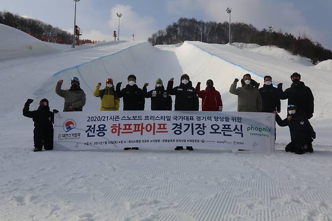 (서울=연합뉴스) 김동찬 기자 = 대한스키협회는 16일 강원도 평창군 휘닉스평창 하프파이프 경기장에서 국가대표 전용 하프파이프 경기장 개장식을 개최했다.