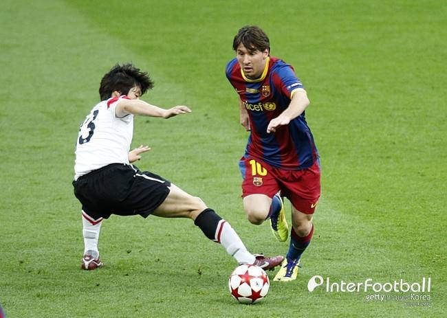 이때 박지성은 메시 뒤에 있던 사비를 마크하고 있었다.