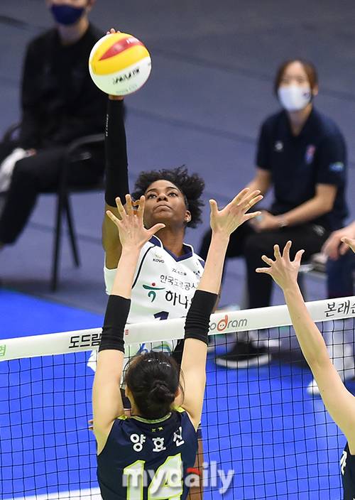 [마이데일리 = 수원 김성진 기자] 한국도로공사 켈시가 16일 오후 경기도 수원실내육관에서 진행된 '도드람 2020-2021 V리그' 여자부 현대건설과 한국도로공사의 경기에서 스파이크를 하고 있다.- ⓒ마이데일리(www.mydaily.co.kr). 무단전재&재배포 금지 -