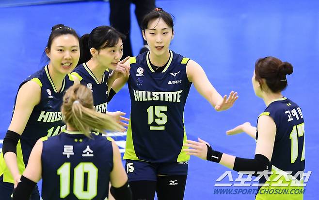 '2020-2021 V리그' 여자부 현대건설과 한국도로공사의 경기가 16일 수원실내체육관에서 열렸다. 현대건설 황민경이 득점 후 환호하고 있다. 수원=박재만 기자 pjm@sportschosun.com/2021.01.16/
