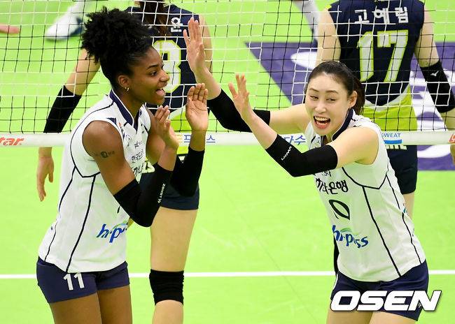 [OSEN=수원, 김성락 기자] 16일 오후 수원실내체육관에서 ‘도드람 2020-2021 V-리그’ 현대건설과 도로공사의 경기가 열렸다.