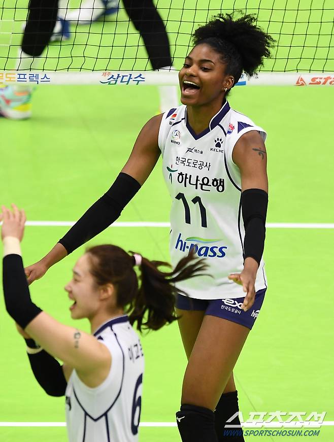 '2020-2021 V리그' 여자부 현대건설과 한국도로공사의 경기가 16일 수원실내체육관에서 열렸다. 한국도로공사 켈시가 득점 후 환호하고 있다. 수원=박재만 기자 pjm@sportschosun.com/2021.01.16/