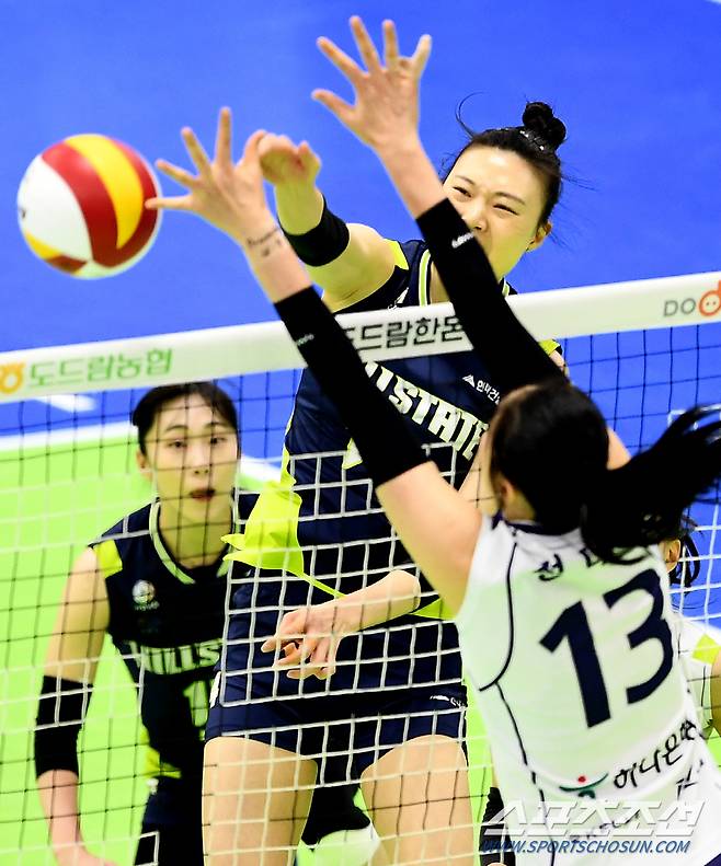 '2020-2021 V리그' 여자부 현대건설과 한국도로공사의 경기가 16일 수원실내체육관에서 열렸다. 현대건설 양효진이 블로킹 벽을 피해 공격을 시도하고 있다. 수원=박재만 기자 pjm@sportschosun.com/2021.01.16/