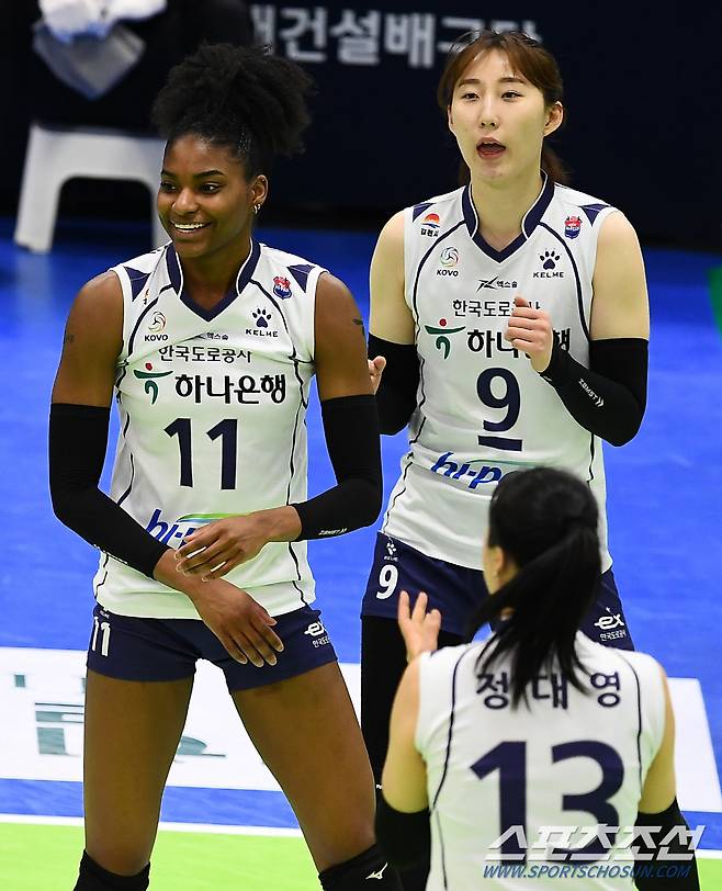 '2020-2021 V리그' 여자부 현대건설과 한국도로공사의 경기가 16일 수원실내체육관에서 열렸다. 한국도로공사 켈시가 득점 후 환호하고 있다. 수원=박재만 기자 pjm@sportschosun.com/2021.01.16/