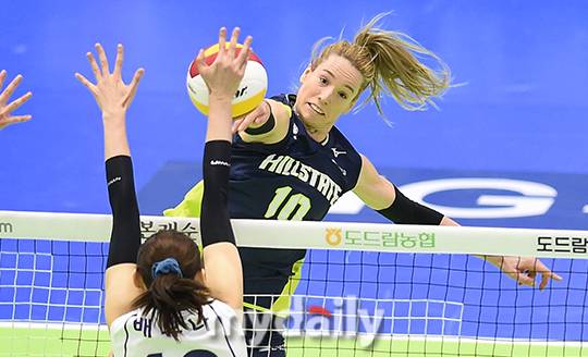 [마이데일리 = 수원 김성진 기자] 현대건설 루소가 16일 오후 경기도 수원실내육관에서 진행된 '도드람 2020-2021 V리그' 여자부 현대건설과 한국도로공사의 경기에서 스파이크를 시도하고 있다.- ⓒ마이데일리(www.mydaily.co.kr). 무단전재&재배포 금지 -