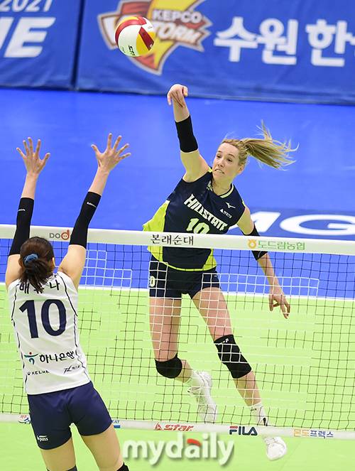 [마이데일리 = 수원 김성진 기자] 현대건설 루소가 16일 오후 경기도 수원실내육관에서 진행된 '도드람 2020-2021 V리그' 여자부 현대건설과 한국도로공사의 경기에서 스파이크를 하고 있다.- ⓒ마이데일리(www.mydaily.co.kr). 무단전재&재배포 금지 -