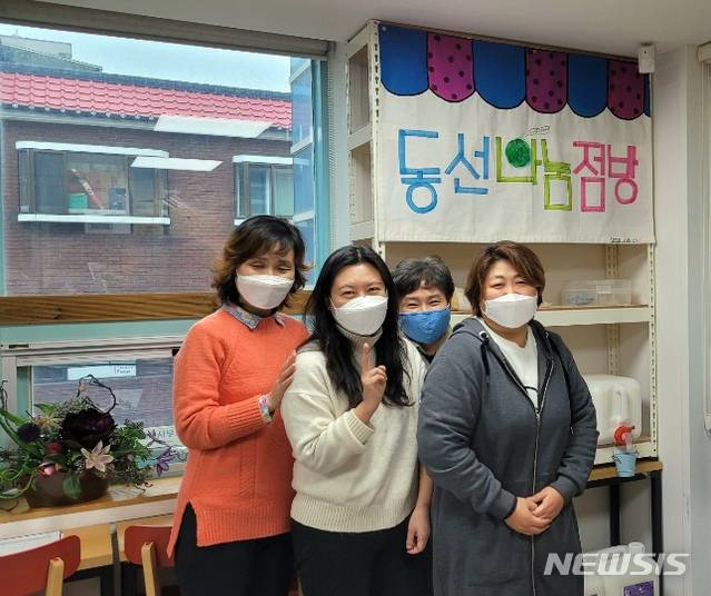 [서울=뉴시스]김명원 기자 = 서울 성북구 동소문동 주민들이 지난 15일 쓰레기를 배출하지 않는 가게 ‘동선나눔점방’문을 열었다. 사진은 동선나눔점방 개소를 주도한 동선동 주민들. (사진=성북구 제공) 2021.01.16. photo@newsis.com